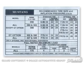 69-70 SHLBY GLOV BOX TIRE PRES