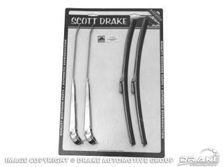 66-68 Winshield Wiper Arm and Blade Kit (Polished Stainless Steel)