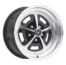 Legendary Magnum 500 alloy wheels are now available in 15" x 8” with a 5 on 4.5" bolt pattern. This size wheel is ideal for owners wanting to run a staggered front/rear set up on their car. This iconic wheel design is enhanced with precision aluminum alloy construction and CNC machined details for a show winning look. Available with a gloss black and machined finish for a traditional muscle car look. Center caps and lug nuts sold separately. Note: Intended for use on rear axle only. Will not work on most front suspension systems due to clearance issues with upper control arms.